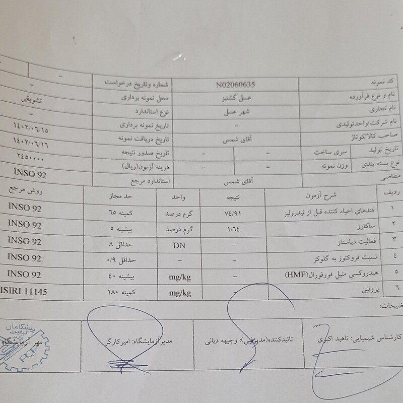 • زمان ماندگاری: عسل تاریخ انقضا نداره (توصیه می‌شود ظرف مدت 2 سال استفاده گردد)